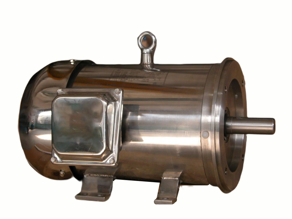 Continuous duty stainless steel motor designed to meet the severe sanitation requirements of food-grade and high pressure washdown motor applications in the pharmaceutical, food and beverage, processing and packaging industries.